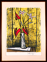 ベルナール ビュッフェ略歴 【Bernard BUFFET】ビュッフェは1928年パリで生まれる。力強い作風・個性的な表現で彗星のように画壇に登場し、ビュッフェは1948年には20歳という若さで、クリティック賞を受賞。1962年にはパリ・シリーズを、1965年にはニューヨーク・シリーズ、そして1966年にはサーカス・闘牛士シリーズ、1979年にはサントロペ・シリーズと優れたリトグラフ作品を次々に制作。現代作家ナンバー1の地位を確立し、ビュッフェは世界中より高く評価されている。 1928 7月10日パリに生まれる 1943 夜間講座に通いデッサンを学ぶ 1944 パリ美術大学に入学 ナルボンヌに師事する 1947 アンデバンダン展 サロン・ドートンヌに出品 初個展を開く 1948 第一回クリティック賞を受賞 1958 シャルバンティエ画廊で ビュッフェ回顧展を開催 1963 東京・国立近代美術館で ビュッフェ展を開催 1973 沼津市郊外に世界初の ビュッフェ博物館を開設 1987 名古屋市愛知県美術館にて 代表作80点を集めた ビュッフェ展を開催 1999 ビュッフェ 死去 |